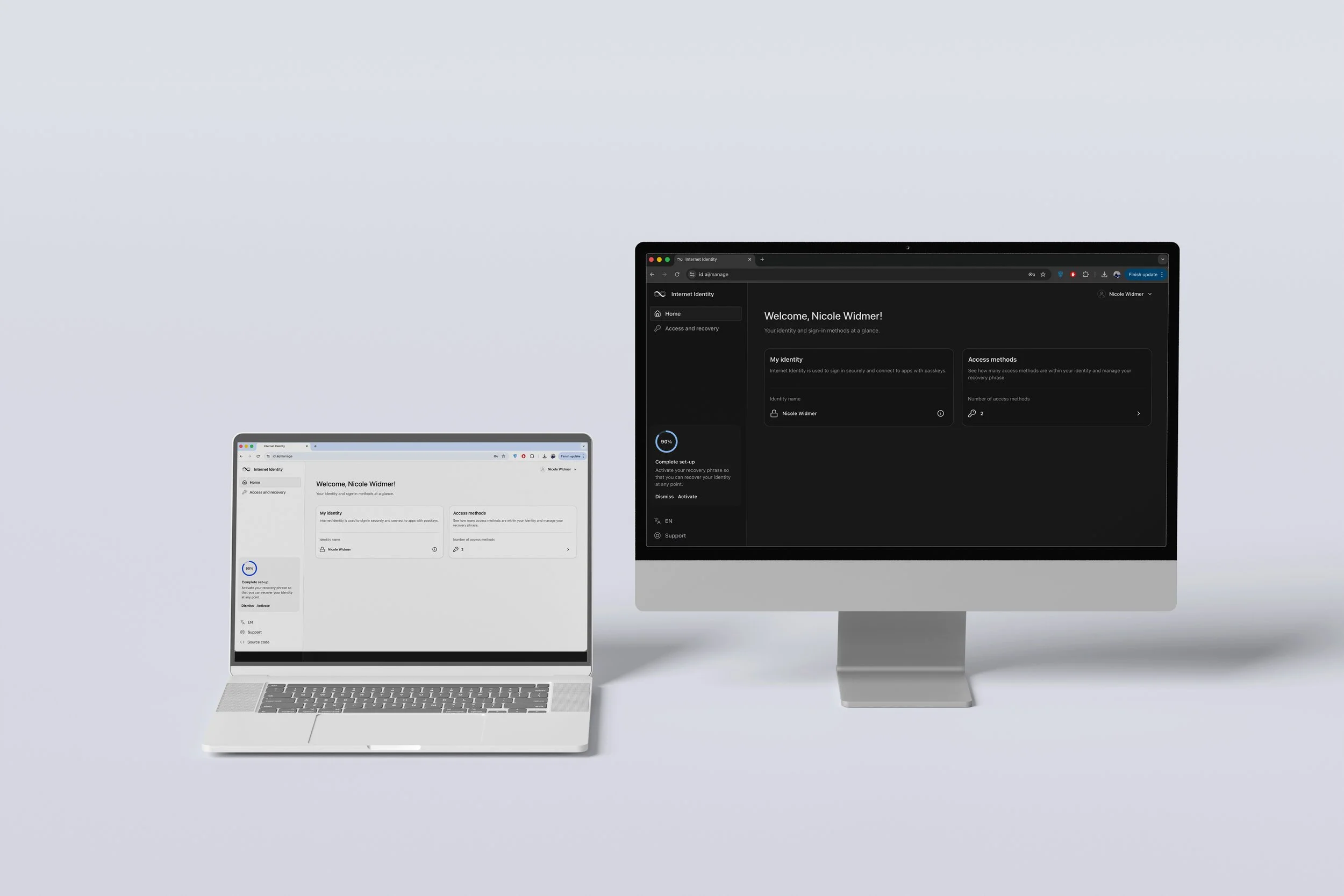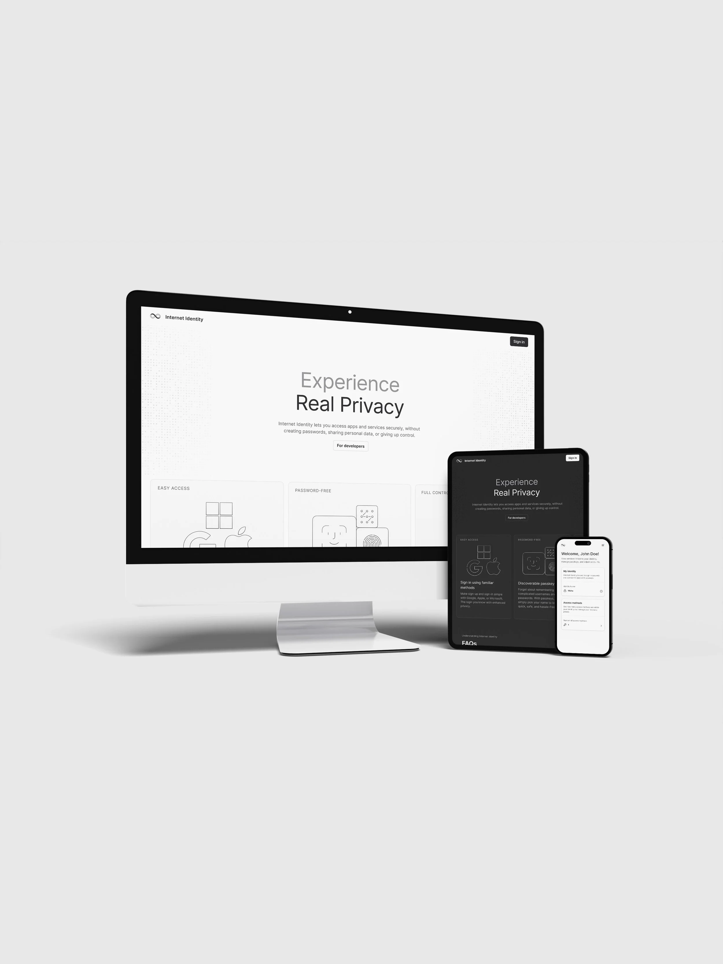 Redesigned the web landing experience and conceptualized a scalable identity management dashboard to clarify the value of a modern authentication method and improve how users interact with their digital identity.